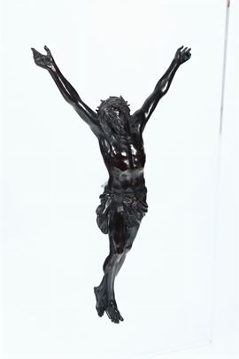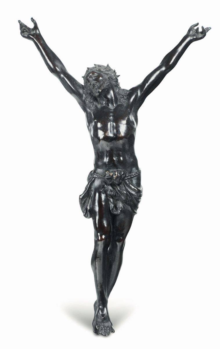Corpus Christi in bronzo fuso, cesellato e patinato, fonditore barocco italiano o francese del XVII-XVIII secolo