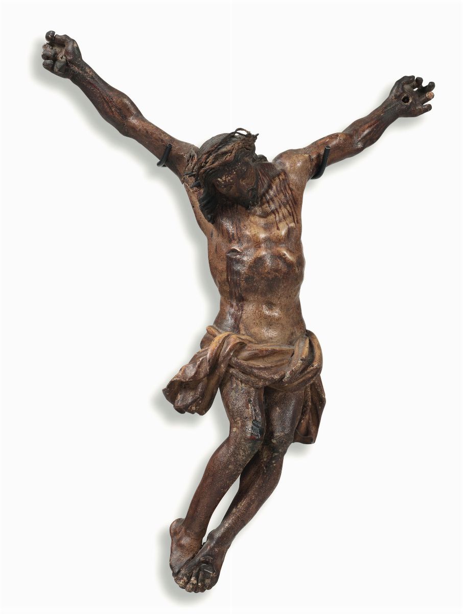 Corpus Christi in legno scolpito e dipinto. Scultore barocco italiano. XVII-XVIII secolo