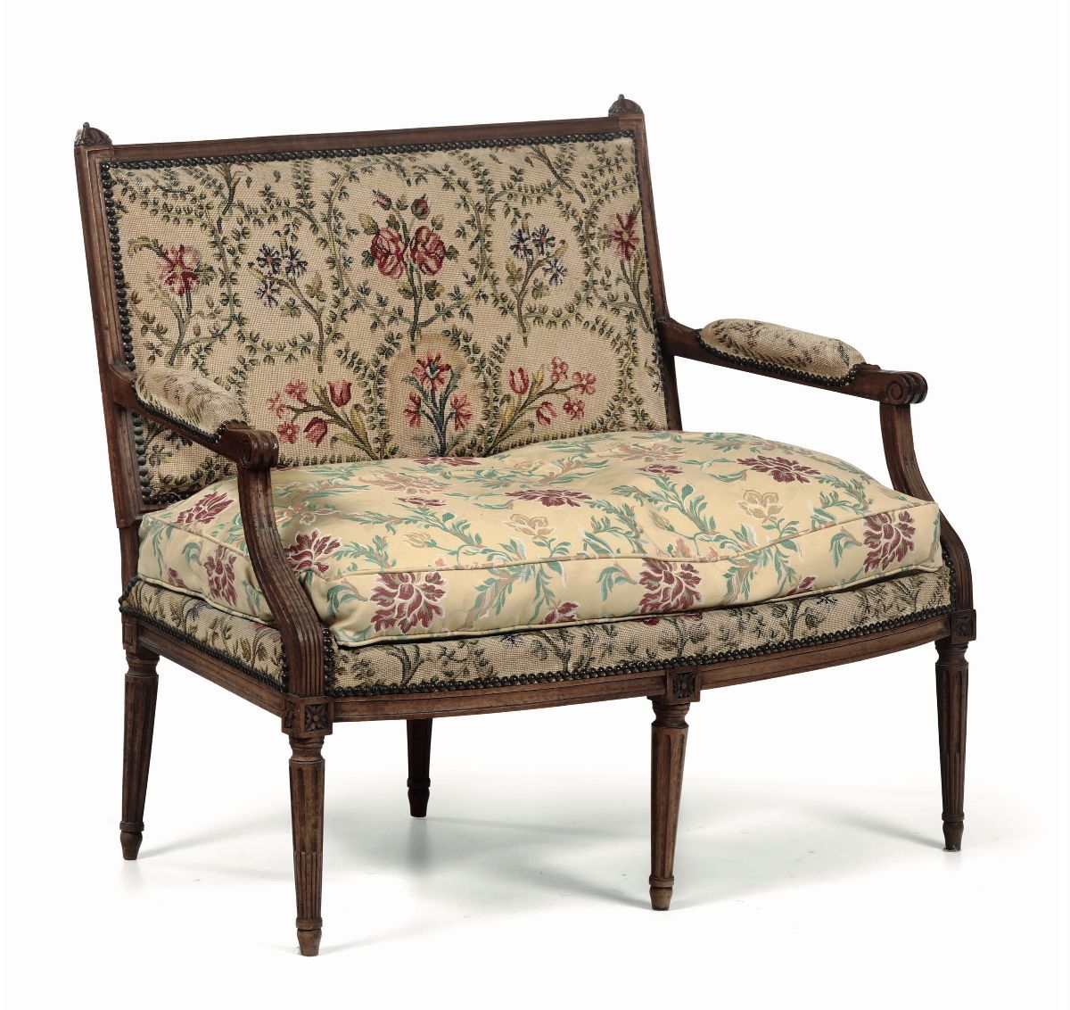 Divanetto Luigi XVI in noce intagliato, fine XVIII secolo