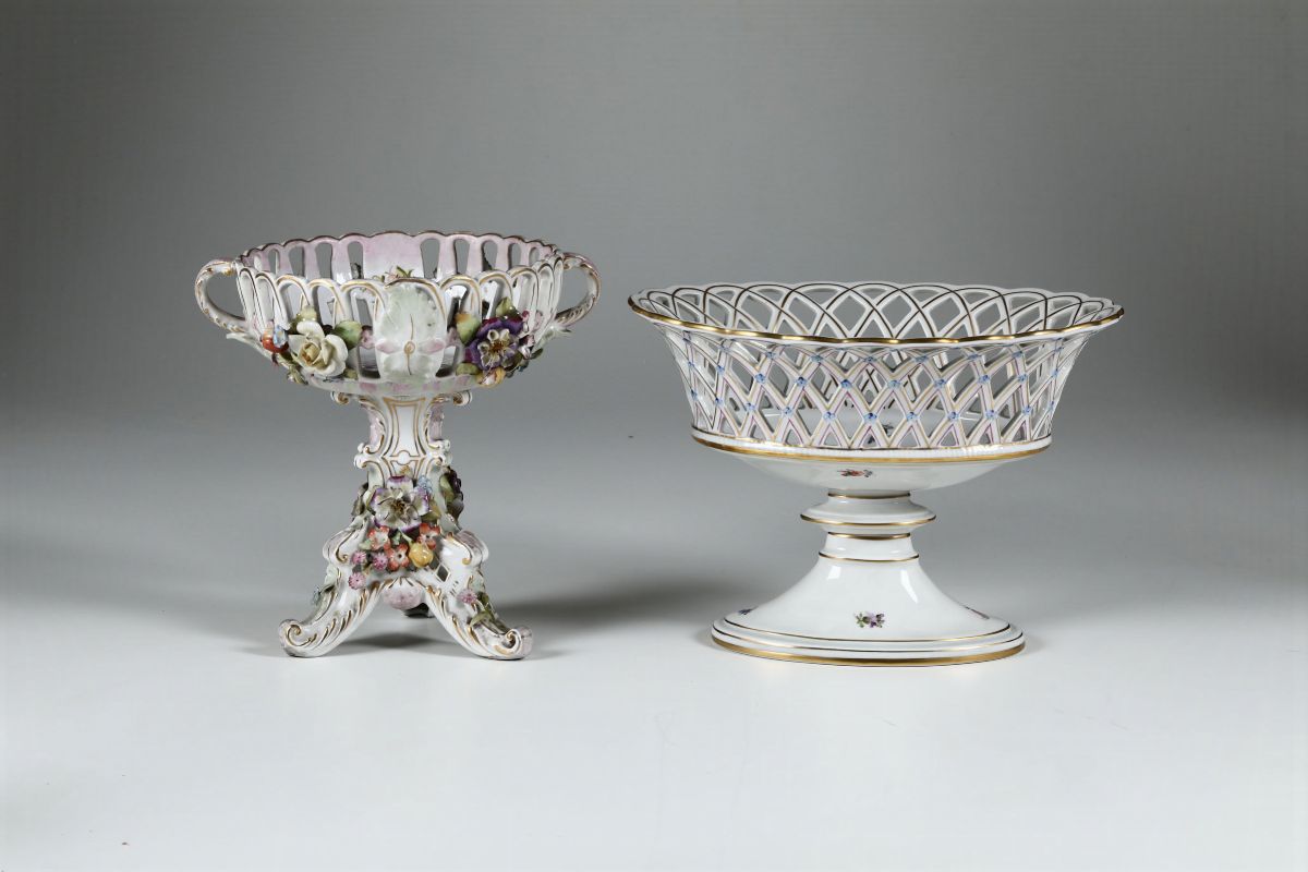 Due alzatine e due cestini Herend e Plaue, fine XIX - XX secolo