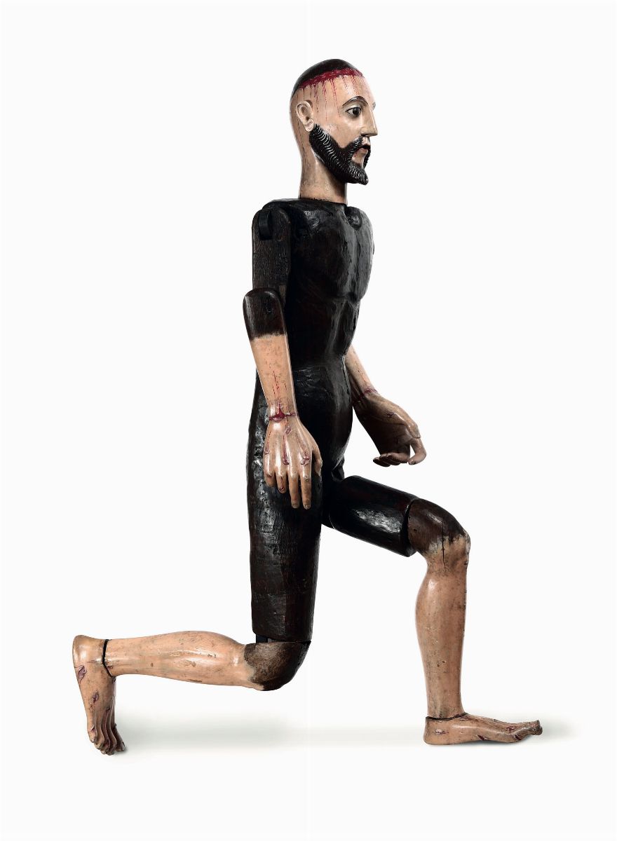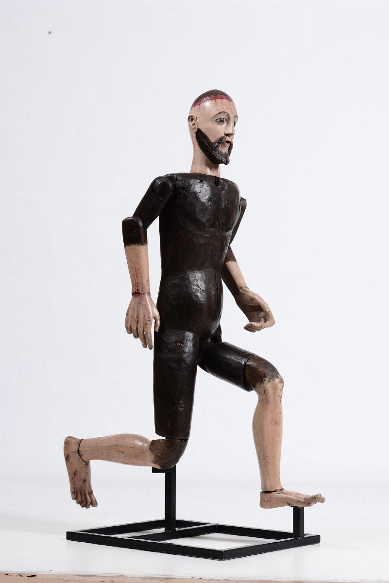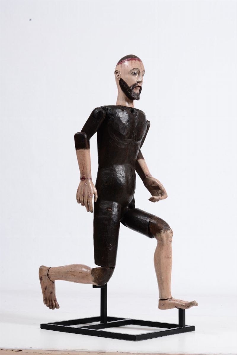 Figura di Cristo, manichino in legno policromo. Spagna o Italia XVII secolo.