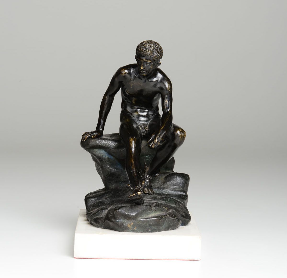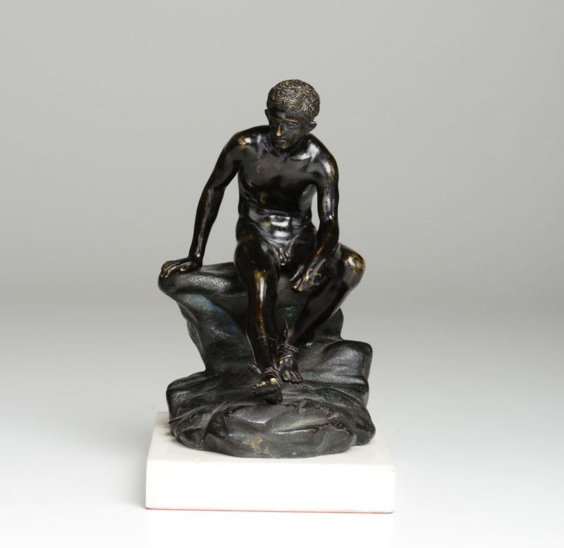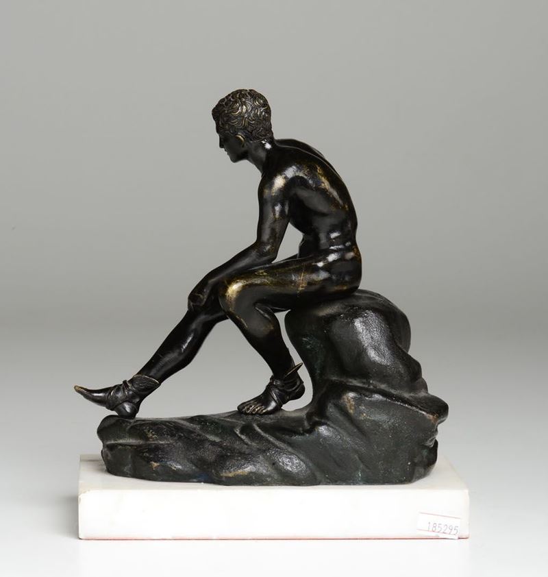 scultura in bronzo, cm 18x10x21, su base in marmo bianco altezza cm 24