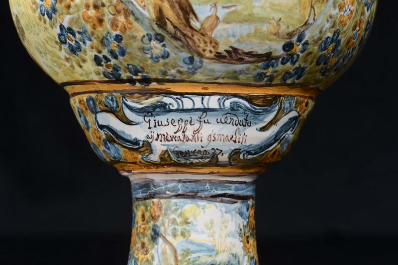 Maiolica policroma a gran fuoco. Altezza cm 55,5.