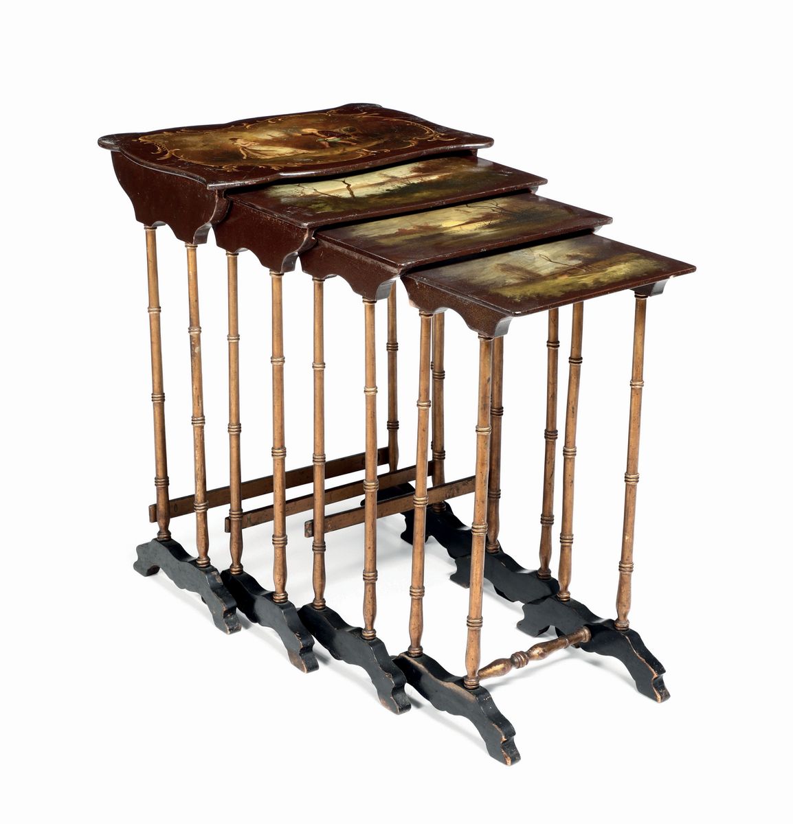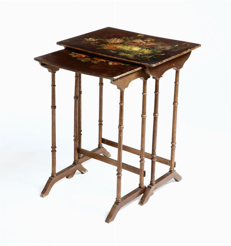 Gruppo di tavolini a nido in legno dipinto in policromia, XIX secolo