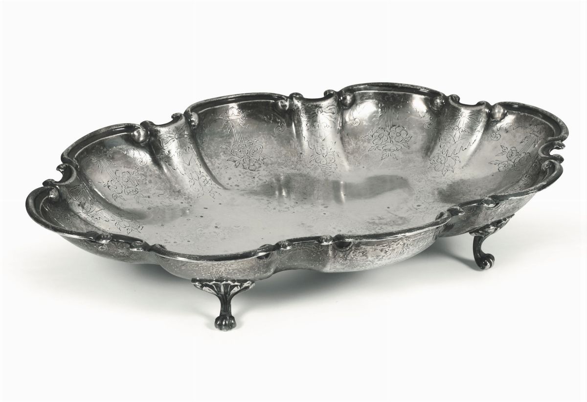 Insieme in argento composto da scatola porta tè e centrotavola sagomato, Italia XX secolo