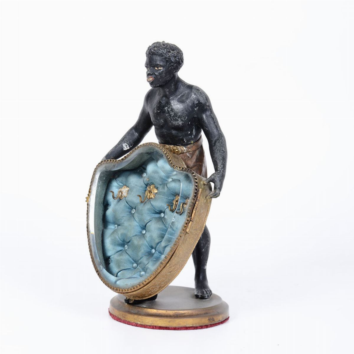 Moretto reggi scatola in bronzo brunito e bronzo dorato, XIX secolo