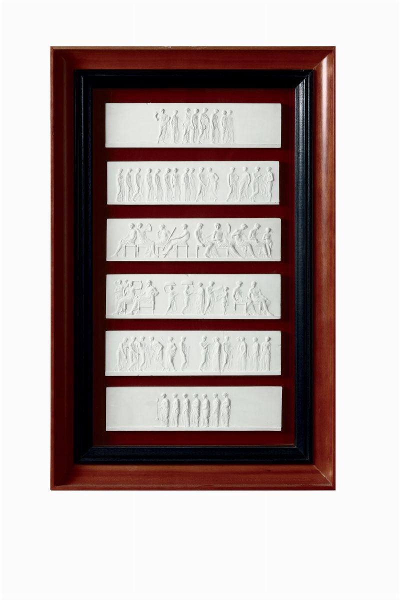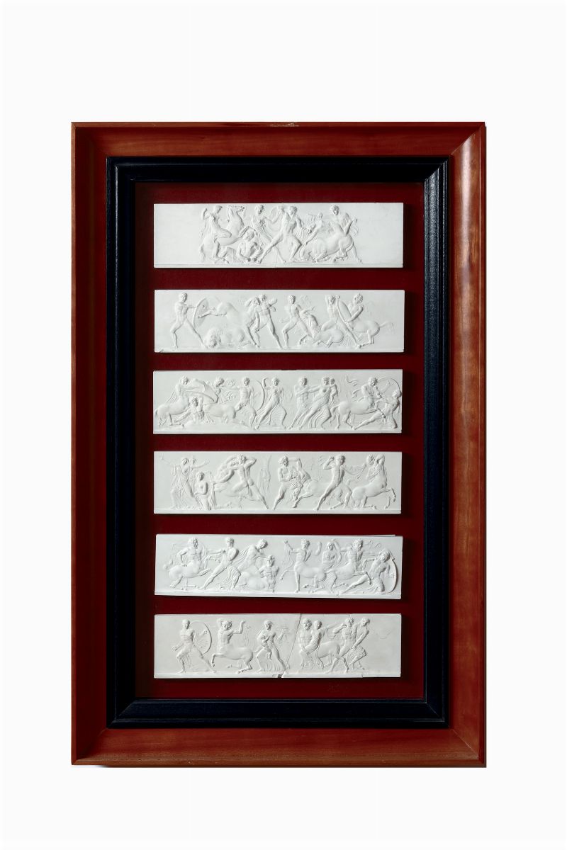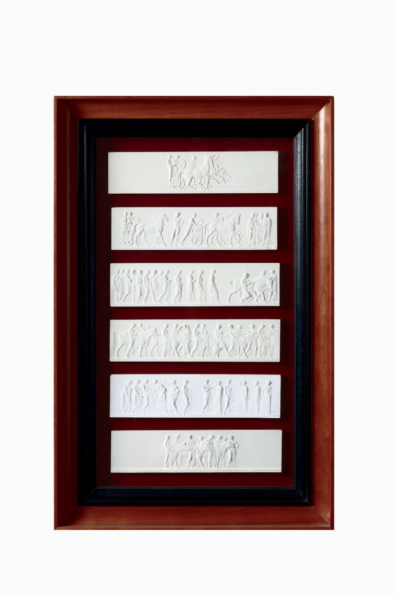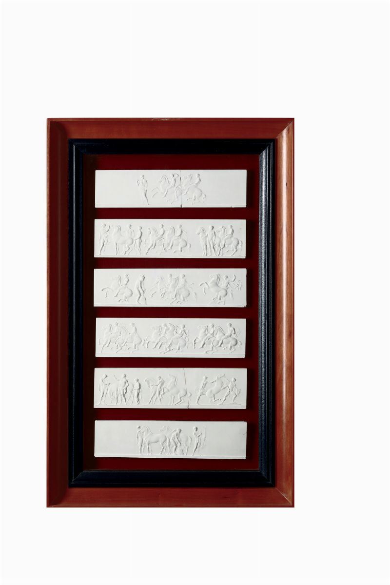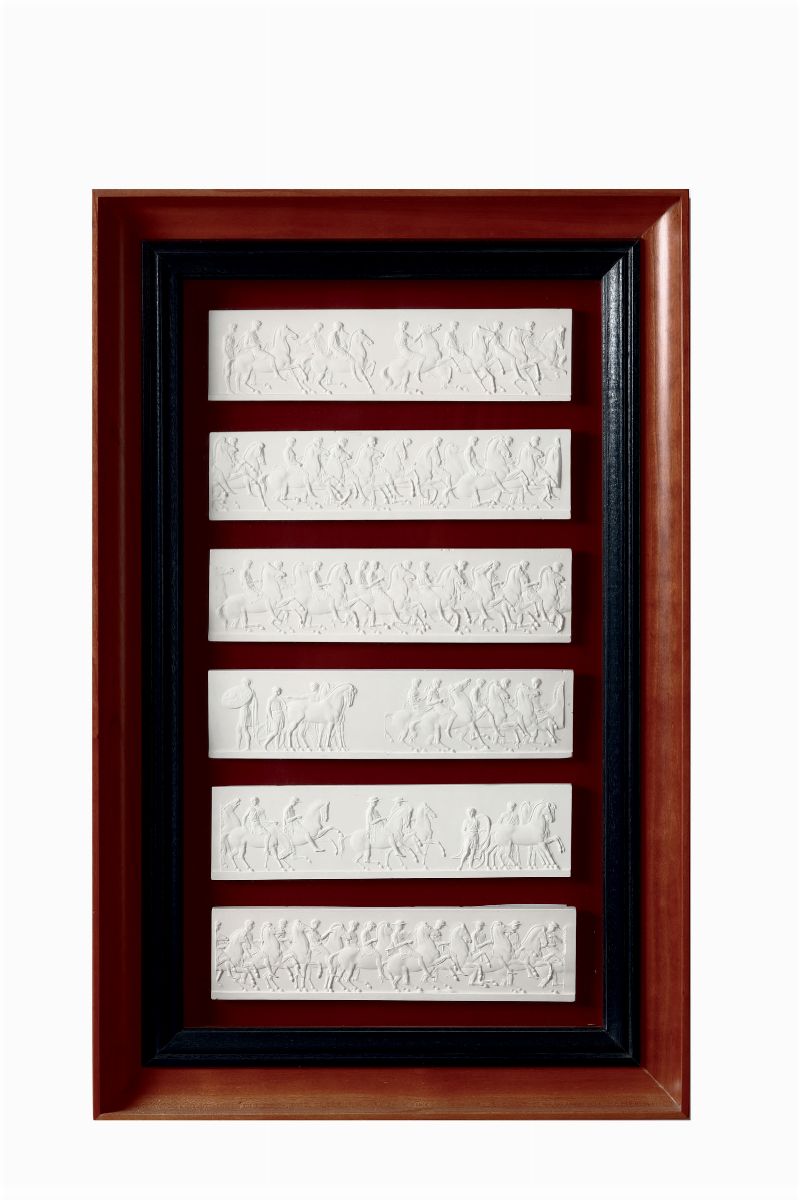 Otto cornici contenenti calchi in gesso riproducenti fregi del Partenone, XIX-XX secolo
