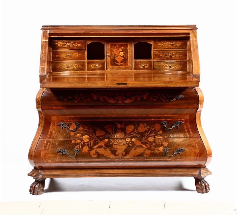 Ribaltina lastronata ed intarsiata in varie essenze, Olanda XIX secolo