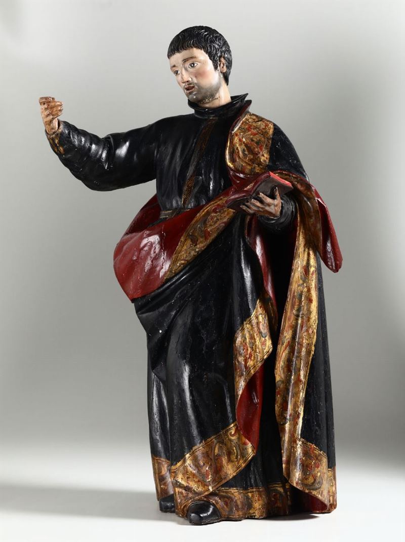 San Paolo, scultura in legno policromo e dorato. Spagna XVII secolo