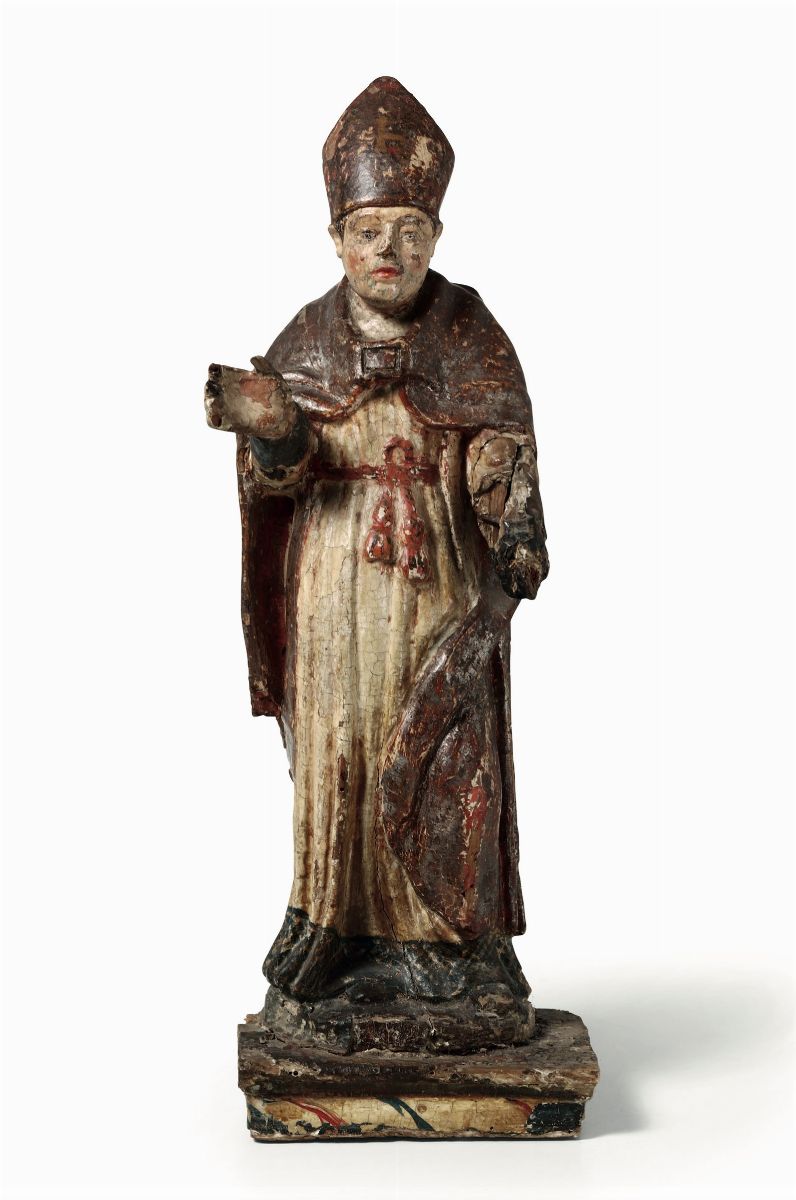 Santo Vescovo in legno policromo, arte Italiana del XVI-XVII secolo