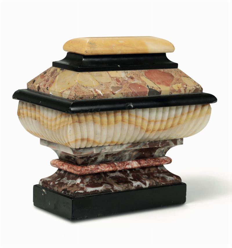 Scatola ad urna in marmi policromi, XIX-XX secolo