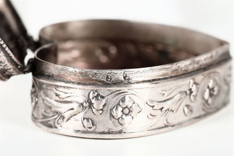 Scatola in argento a forma di cuore con scene di fanciulli e capre, fine XIX secolo