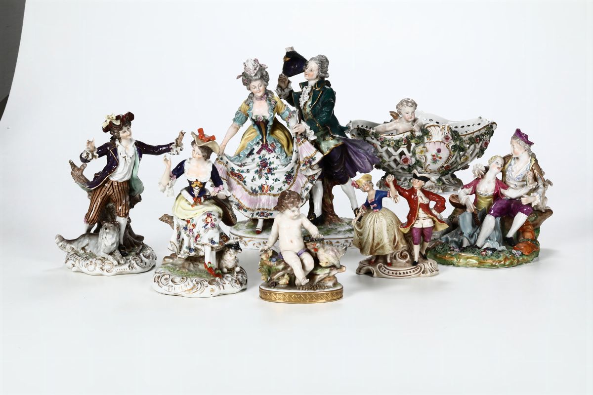 Sette gruppi e una cestina Doccia, Richard Ginori e manifatture diverse, XX secolo