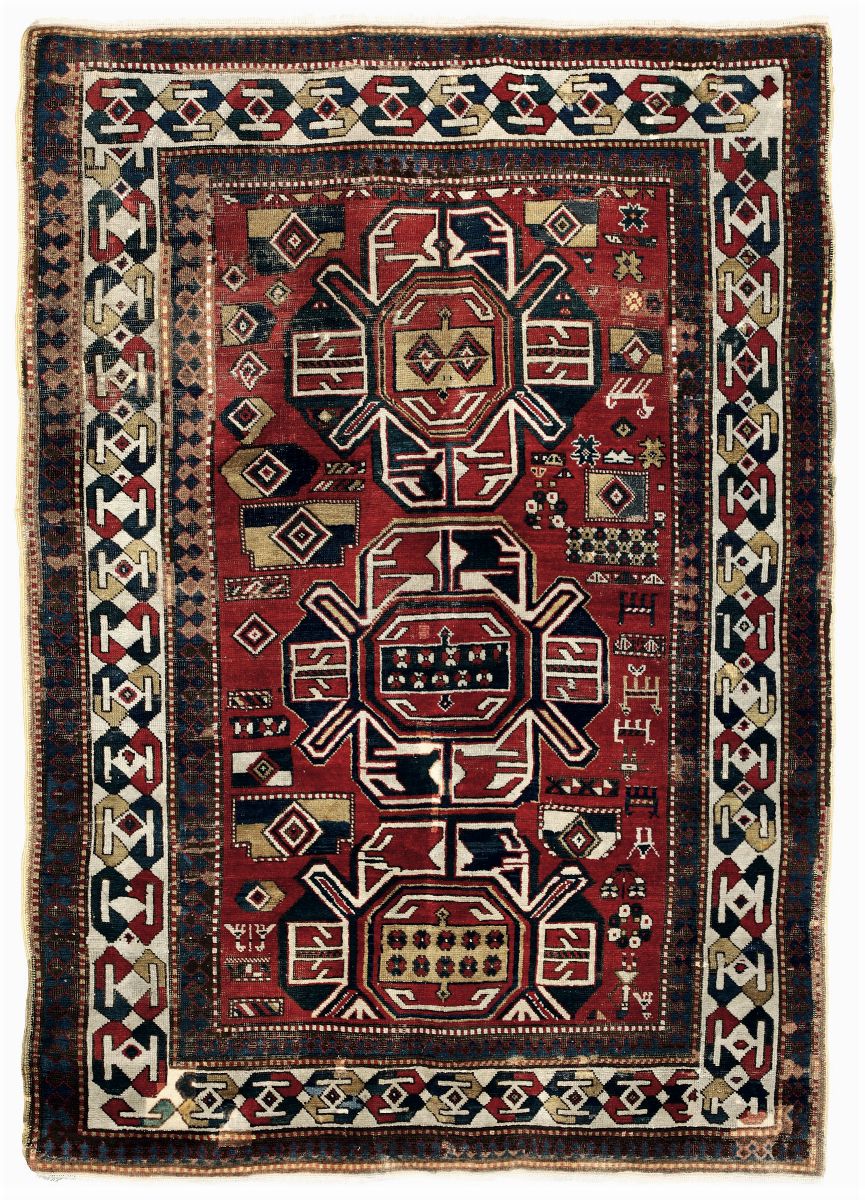 campo rosso mattone con tre medaglioni, particolare bordura cm 230x163