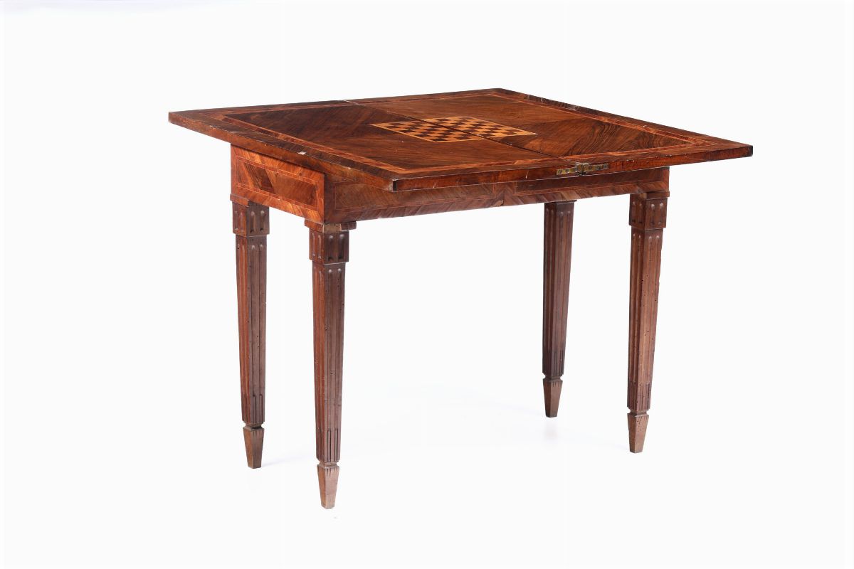 Tavolino da gioco Luigi XVI lastronato ed intarsiato, XVIII secolo