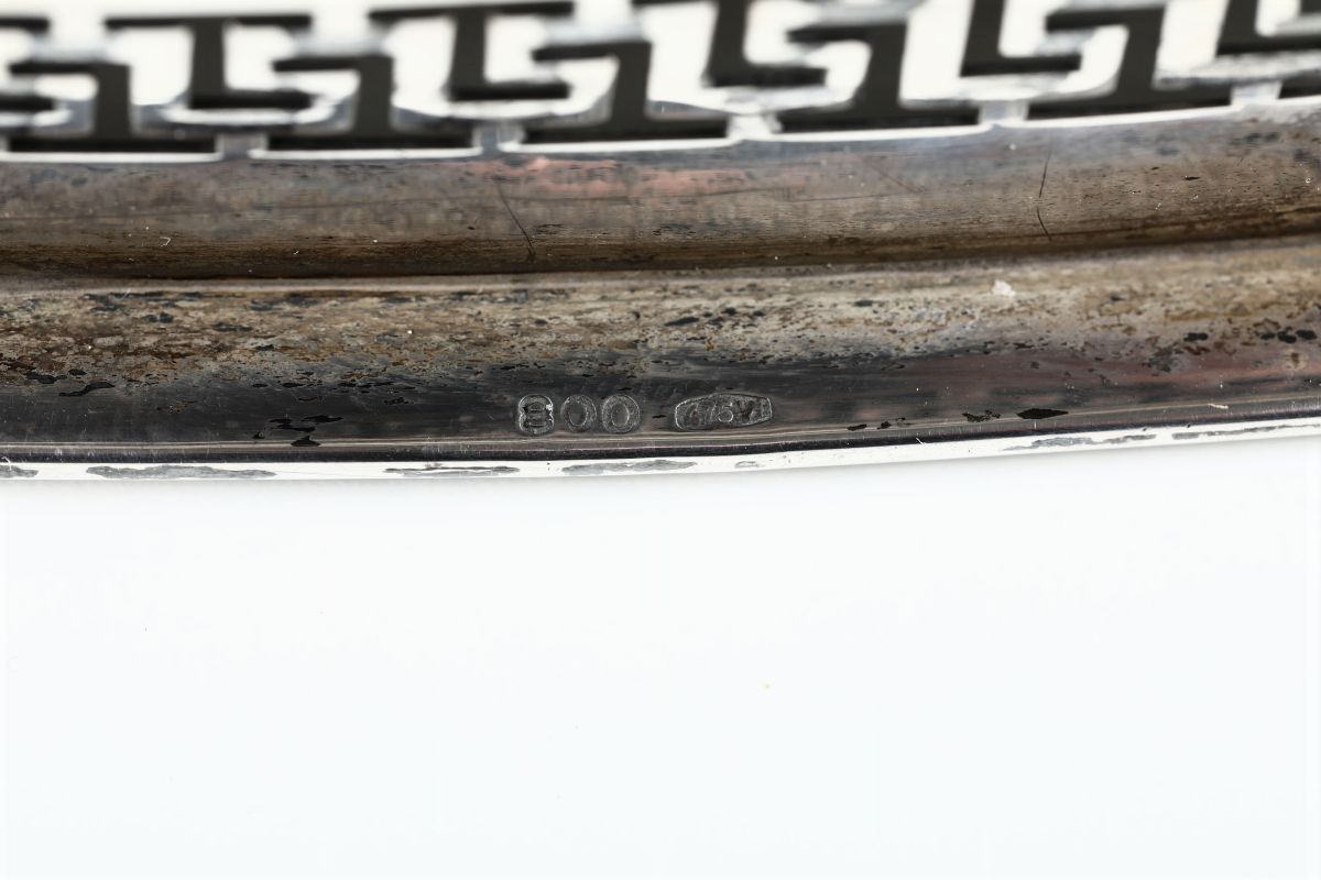 Vassoio in argento di forma sagomata e bordo a ringhiera traforata, Italia XX secolo