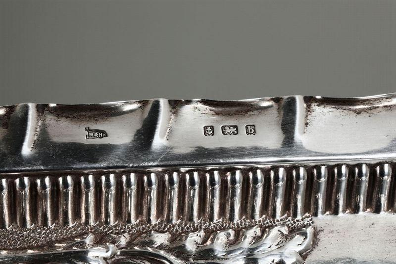 Vassoio in argento fuso e sbalzato. Inghilterra,Birmingham 1901, argfentiere Walker & Hall
