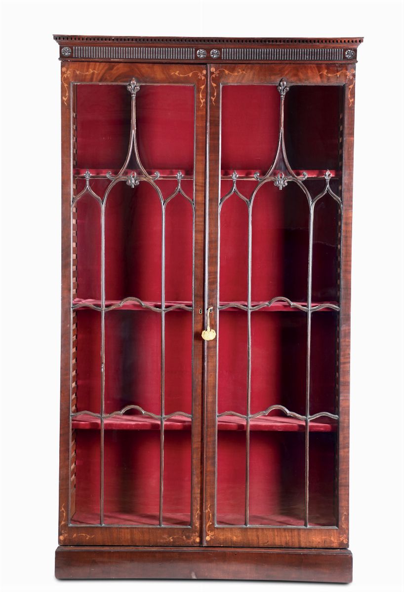 Vetrina a due ante lastronata ed intarsiata, XIX secolo