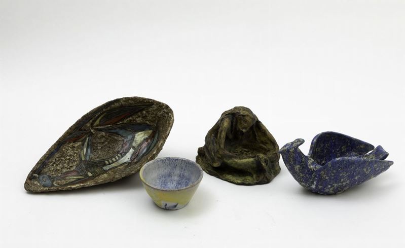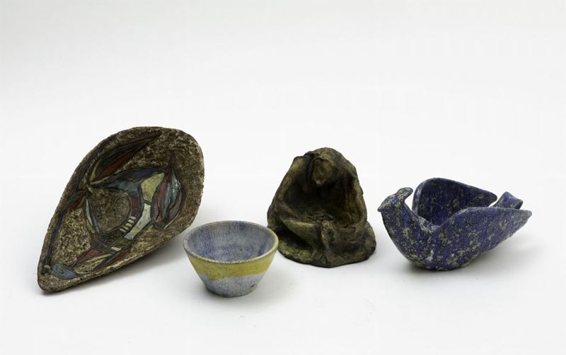 Lotto composto da quattro soprammobili in ceramica policroma.
