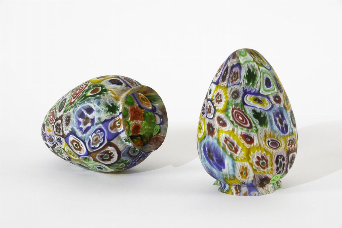 Coppia di diffusori in vetro a murrine.