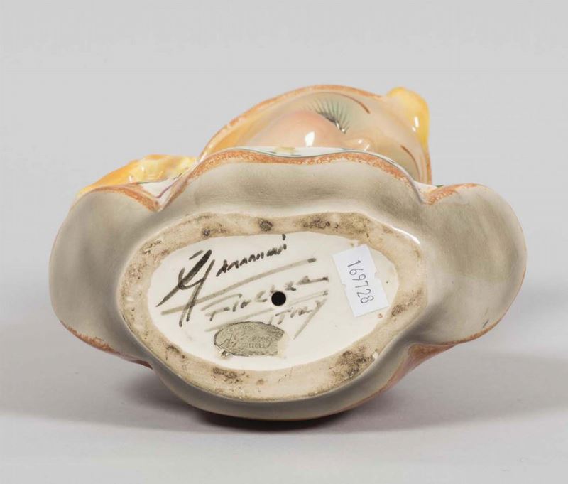 Busto di bambina in terraglia a colaggio con decoro policromo.