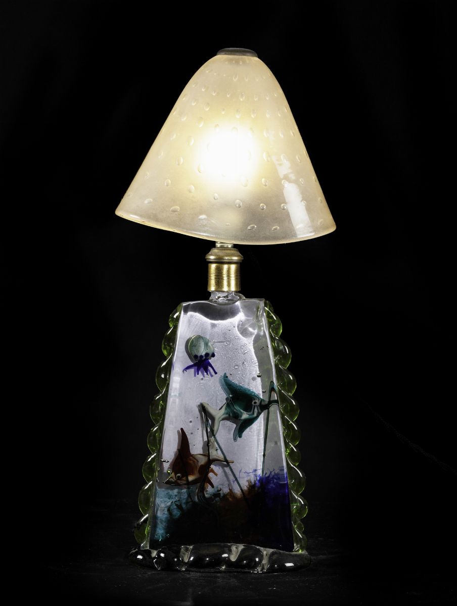 Lotto composto da due lampade da tavolo in vetro soffiato.