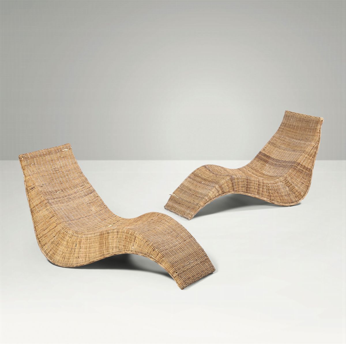 Coppia di poltrone con struttura in giunco e paglia intrecciata.
