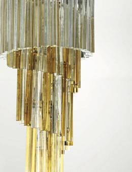 Lampada con struttura in metallo cromato e diffusore in vetro. Prod. AV Mazzega, Italia, 1970 ca. cm 81