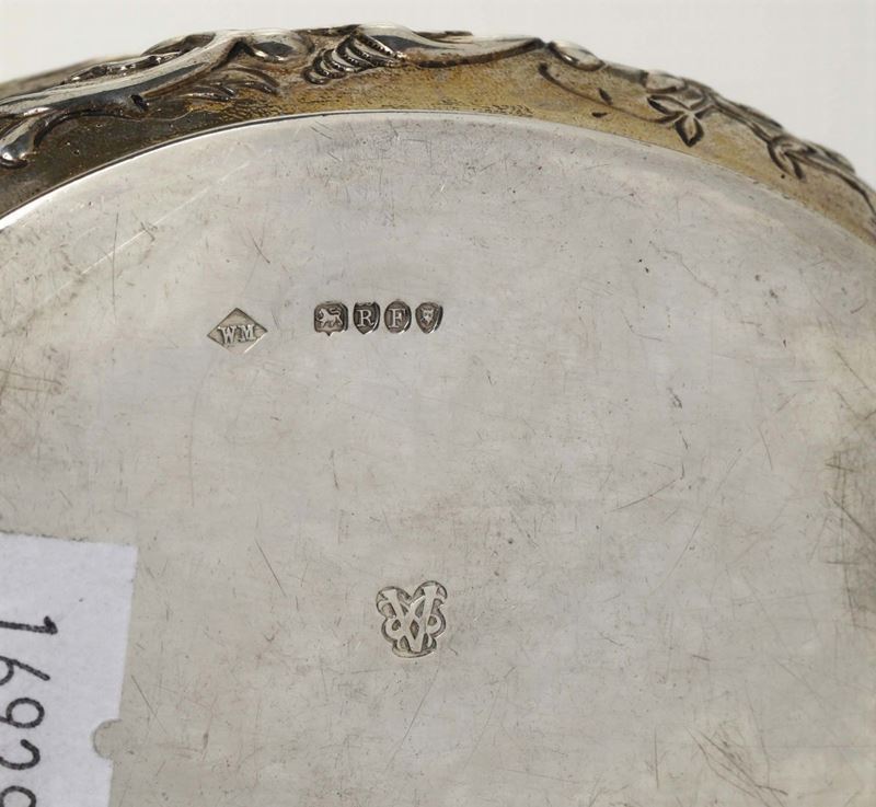 Lotto di sette scatoline in argento e metallo argentato, misure diverse