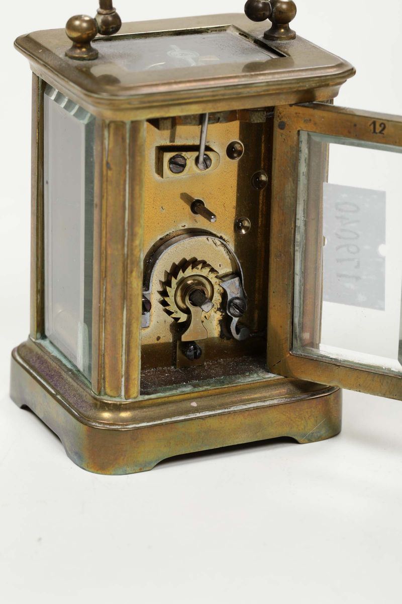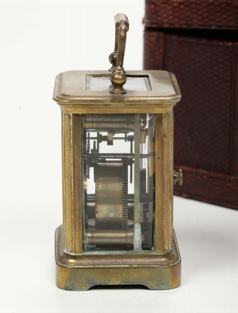 Quadrante bianco con numerazione romana in nero, cm 5x4x7, entro custodia in pelle