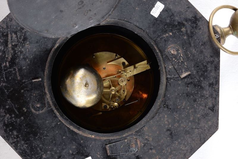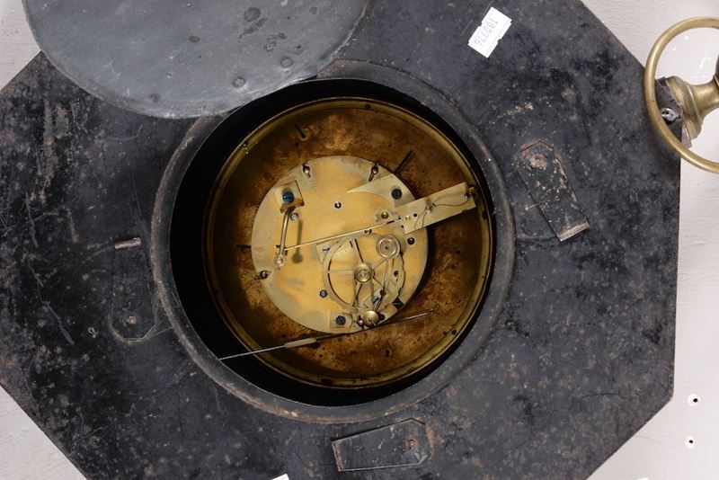 Orologio da parete ottagonale in metallo dipinto in policromia, XIX-XX secolo