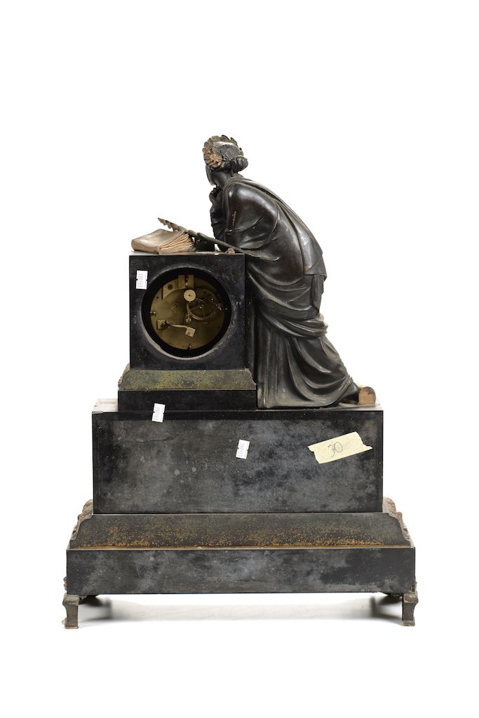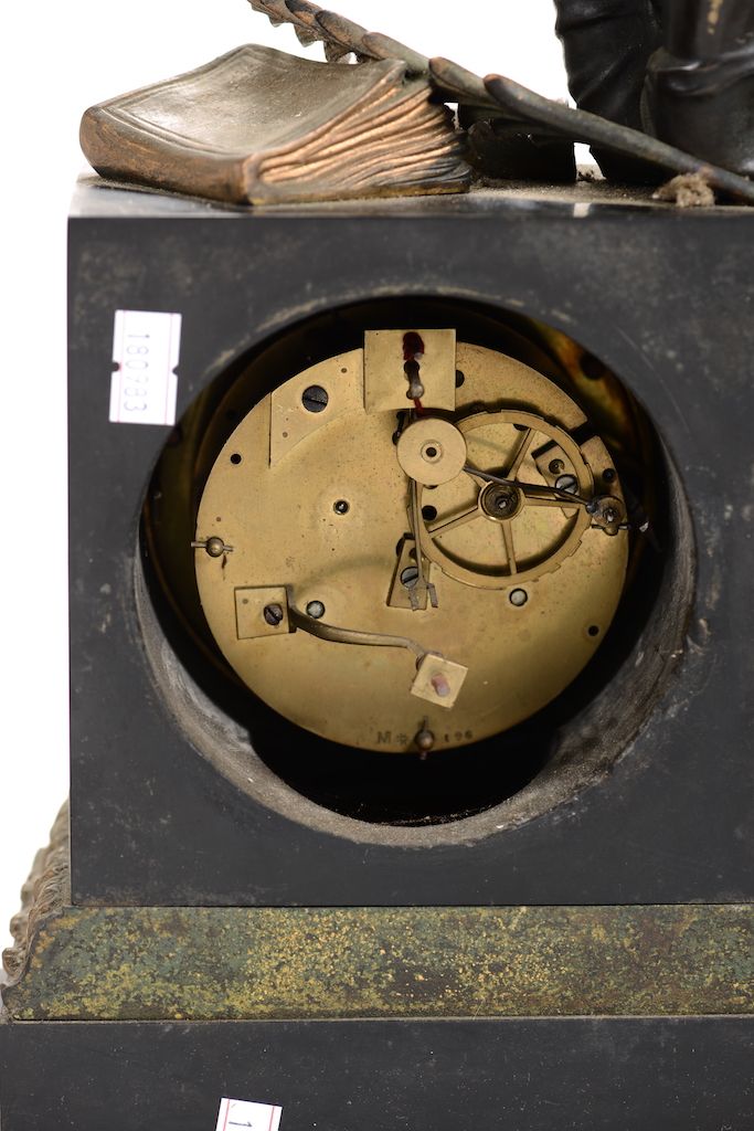 Pendola da tavolo in marmo nero e metallo, XIX secolo