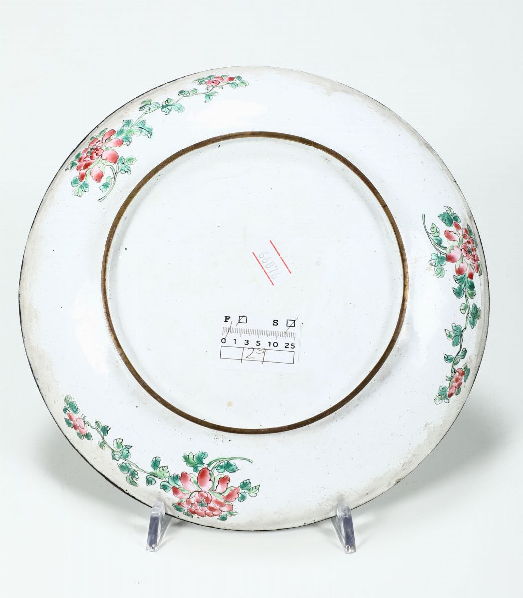 Piatto in smalto con raffigurazione di cortigiane, Cina XIX secolo