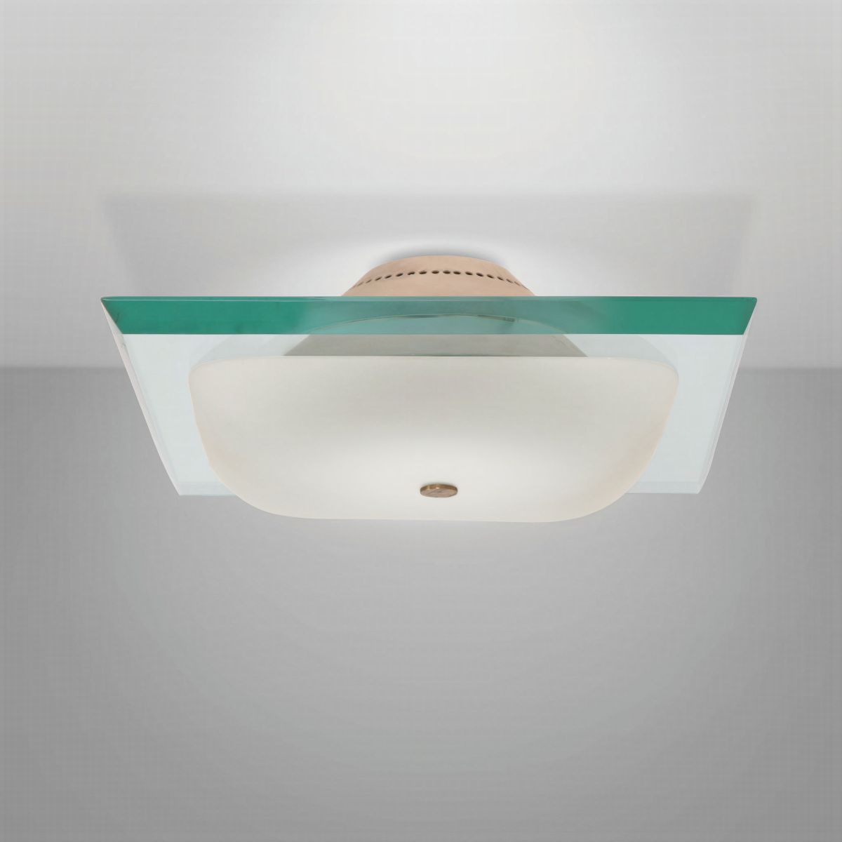 Plafoniera modello 1990 in cristallo molato con schermo in cristallo curvato satinato.