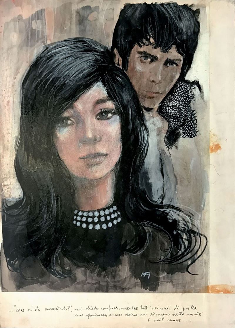 Lotto di 6 illustrazioni pittoriche realizzate per novelle pubblicate nelle riviste “Bella”edite da Rizzoli 1965-1966. Tecnica mista su cartone e cartoncino in formato variabile da cm 24x33 a cm 49x35. Tutte firmate sull’opera; al retro timbro editoriale, titolo e datazione. Consuete tracce d’uso editoriale ai margini, complessivo ottimo stato.