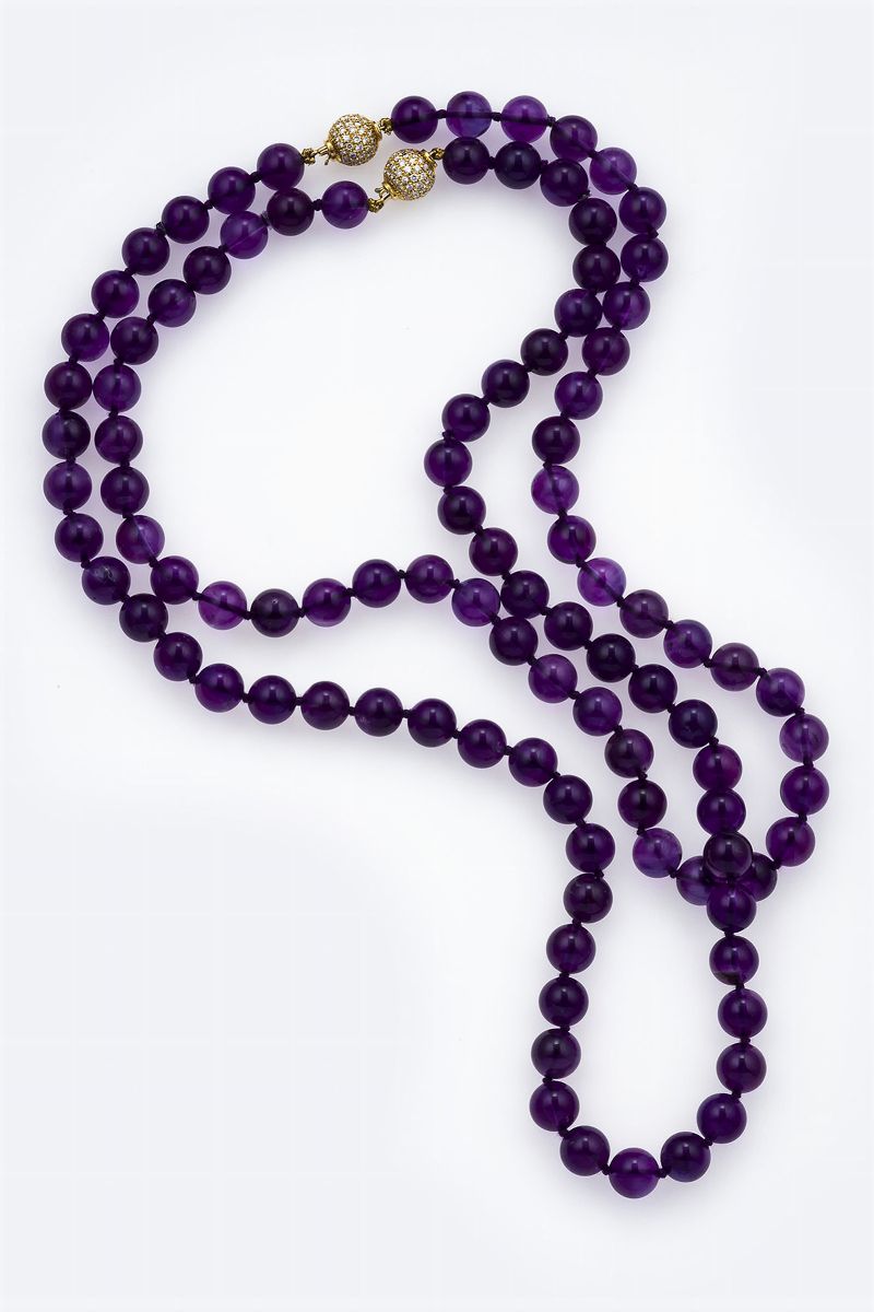 fermezze in oro giallo 750/1000 con pavè di diamanti. Il sautoir è divisibile in due collane