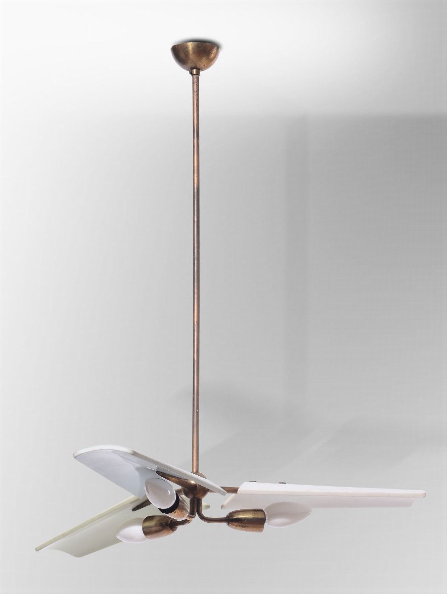 Lampada a sospensione con struttura in ottone e diffusori in ceramica