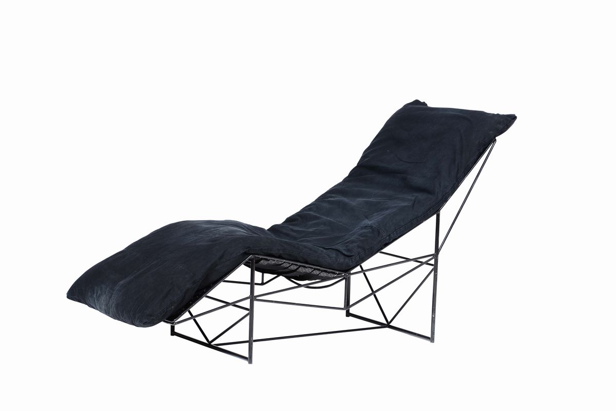 Chaise longue con struttura in metallo laccato. Rivestimenti in tessuto.