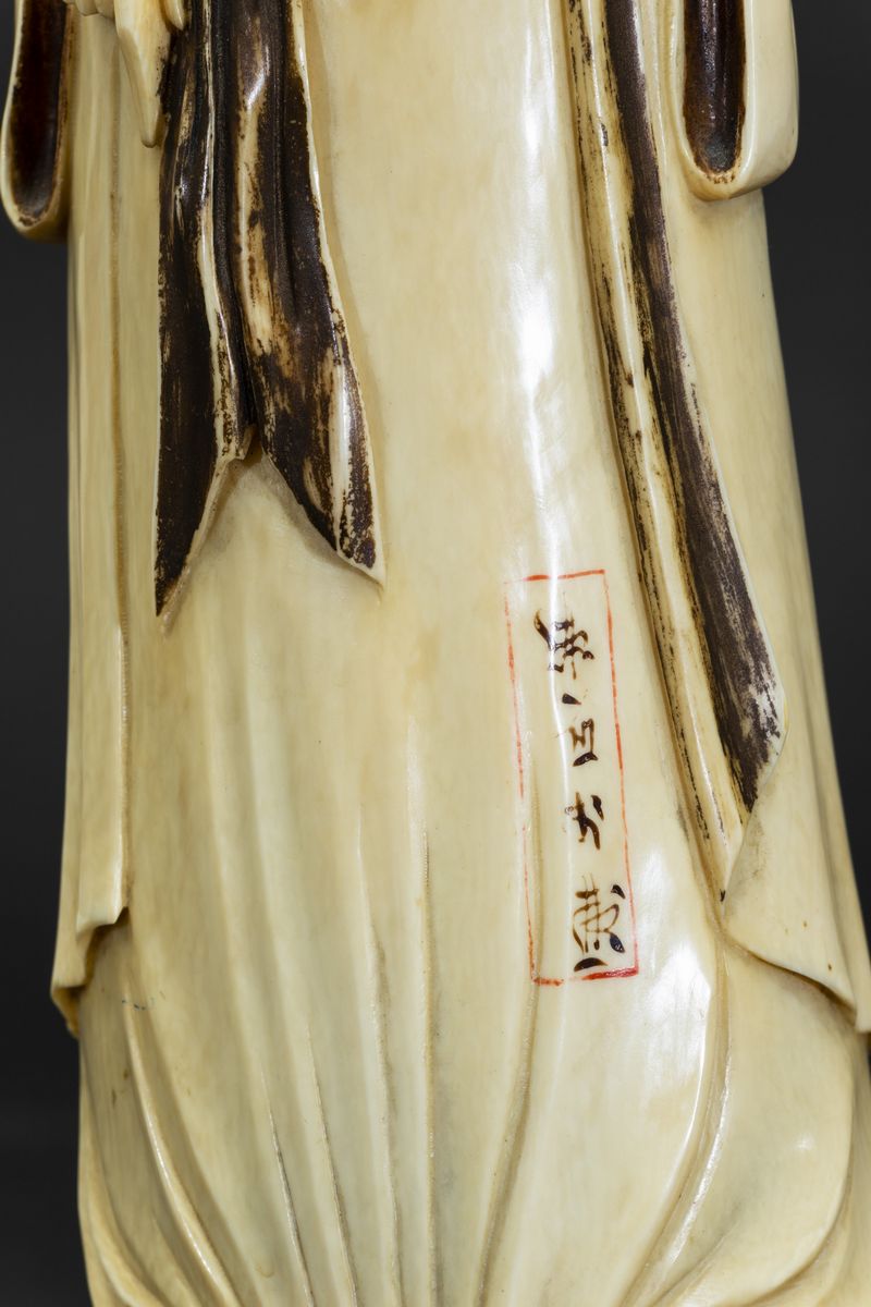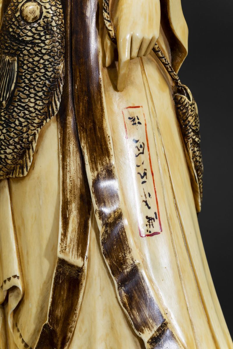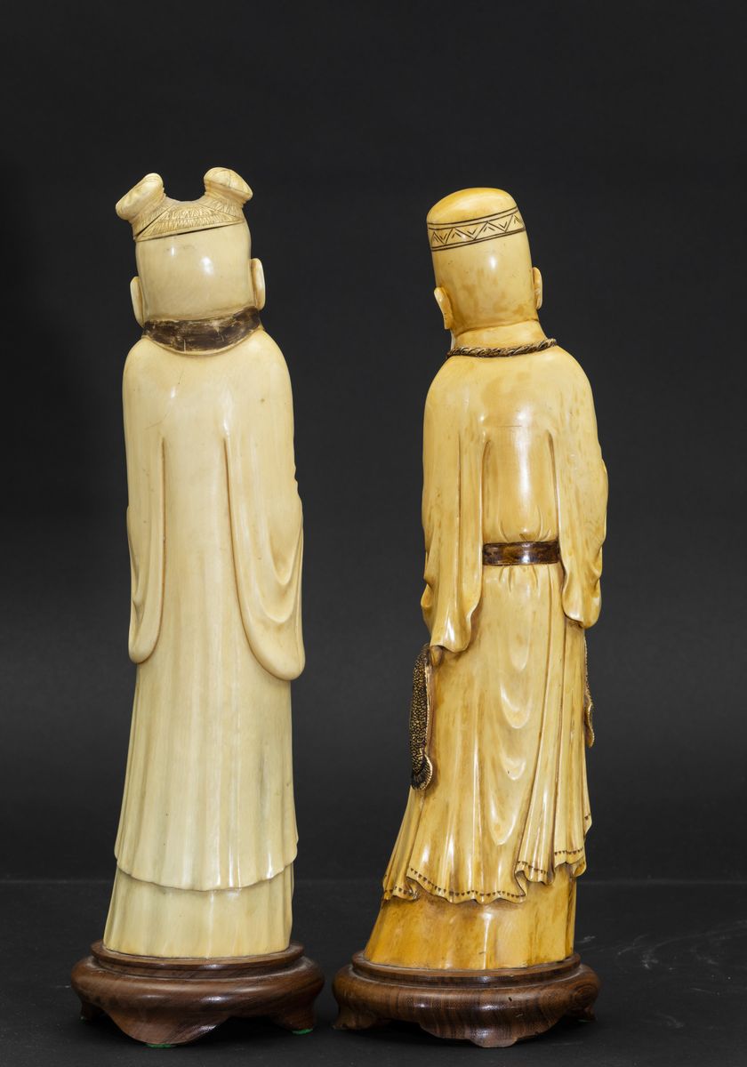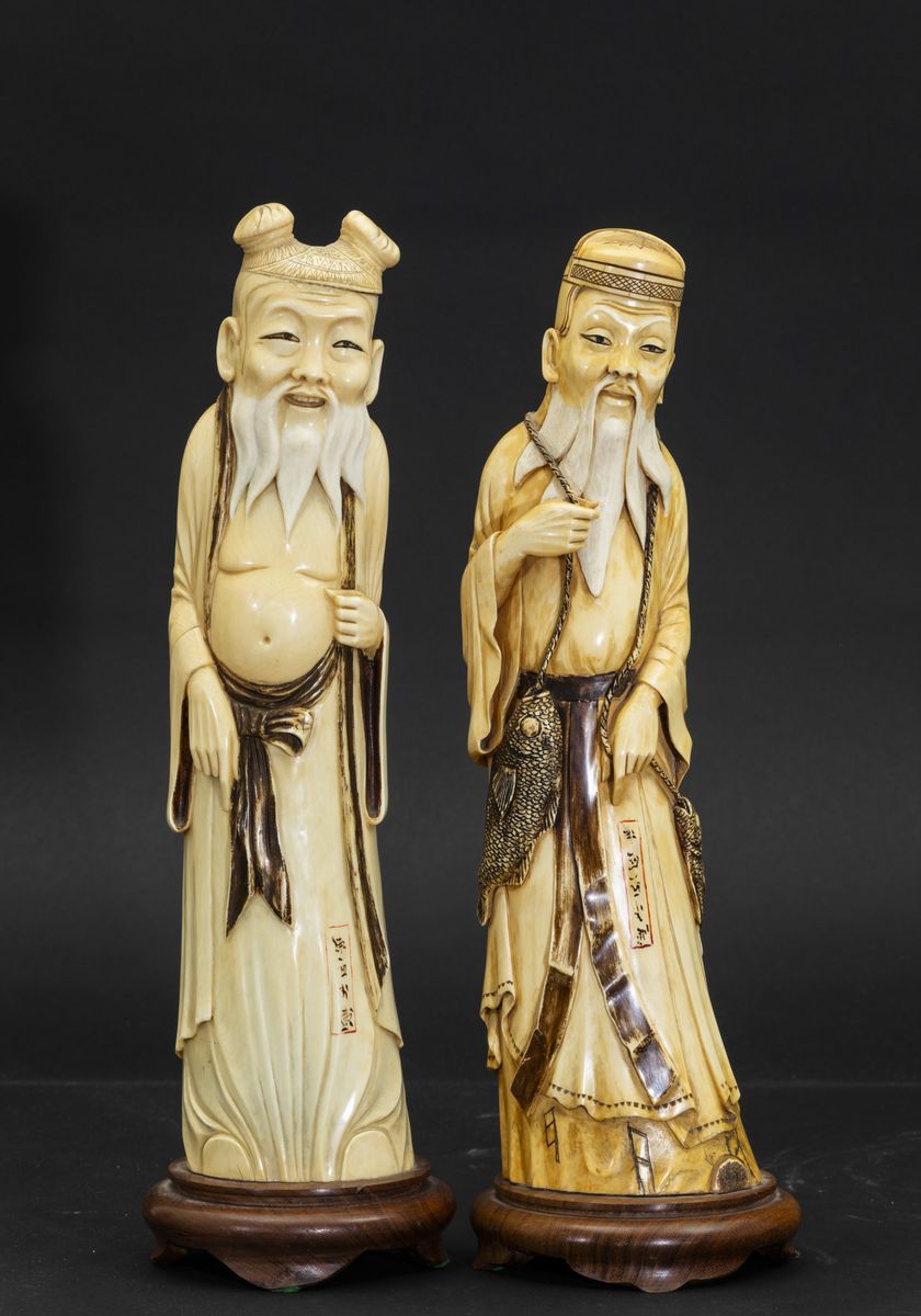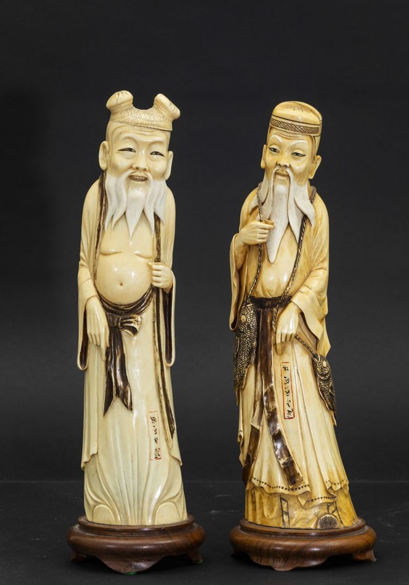 Coppia di figure di saggi scolpite in avorio, Cina, inizi XX secolo