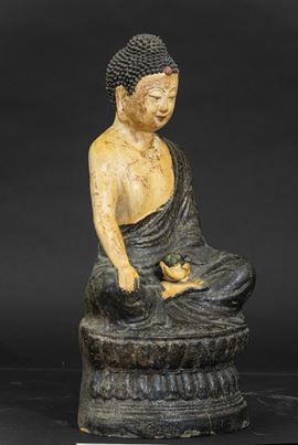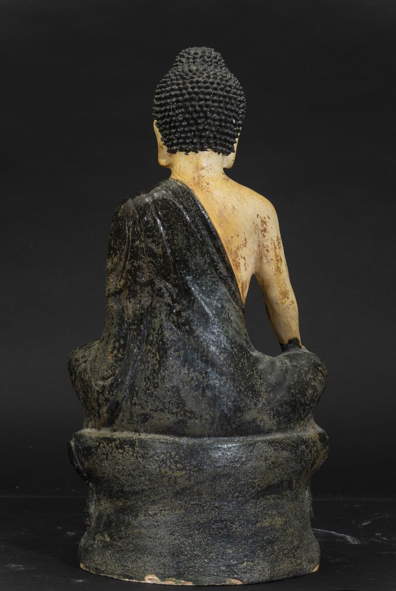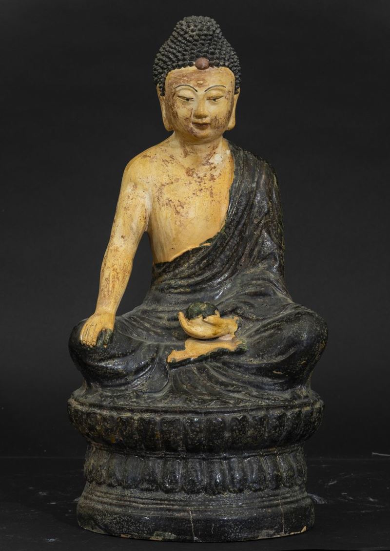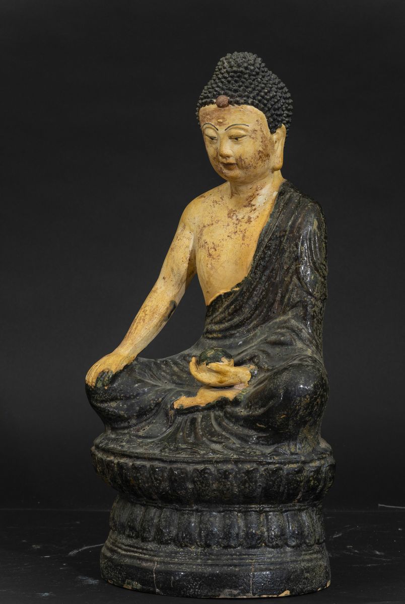 Figura di Buddha Sakyamuni in terracotta smaltata, Cina, XX secolo