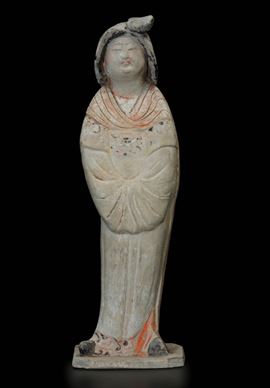 Figura di Fat Lady in terracotta con tracce di policromia, Cina, Dinastia Tang (618-906)