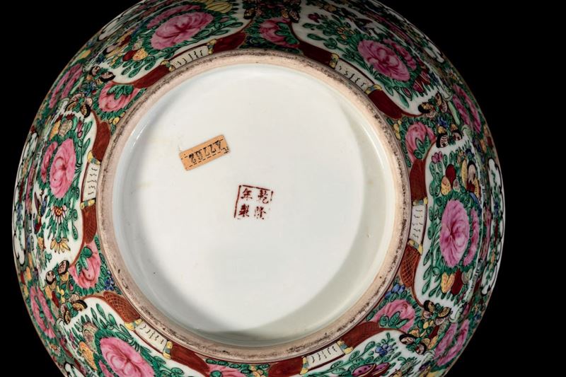 Grande ciotola in porcellana Canton con decoro floreale, Cina, XX secolo