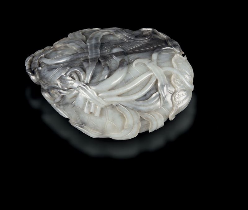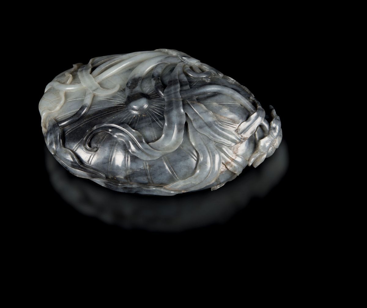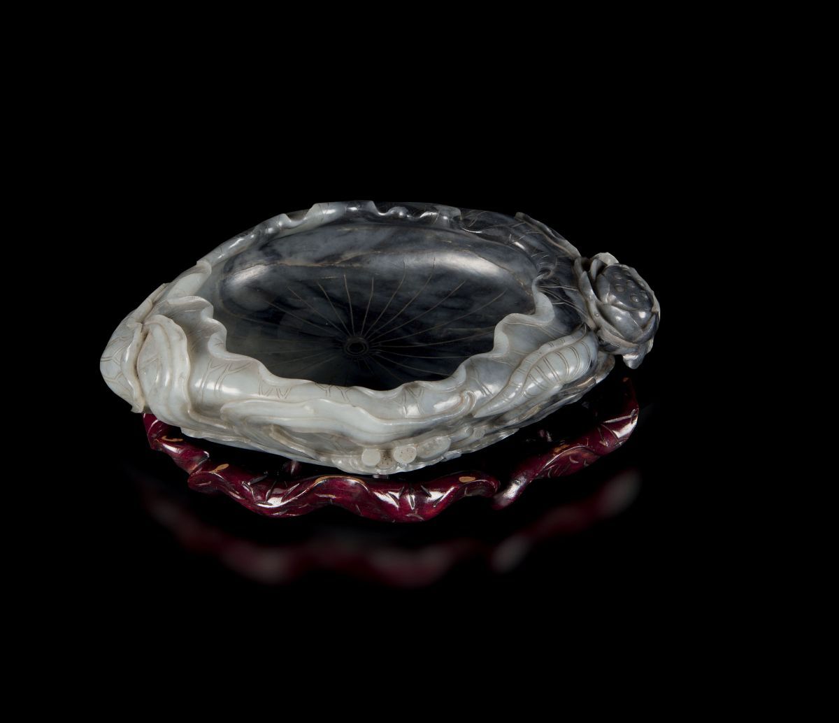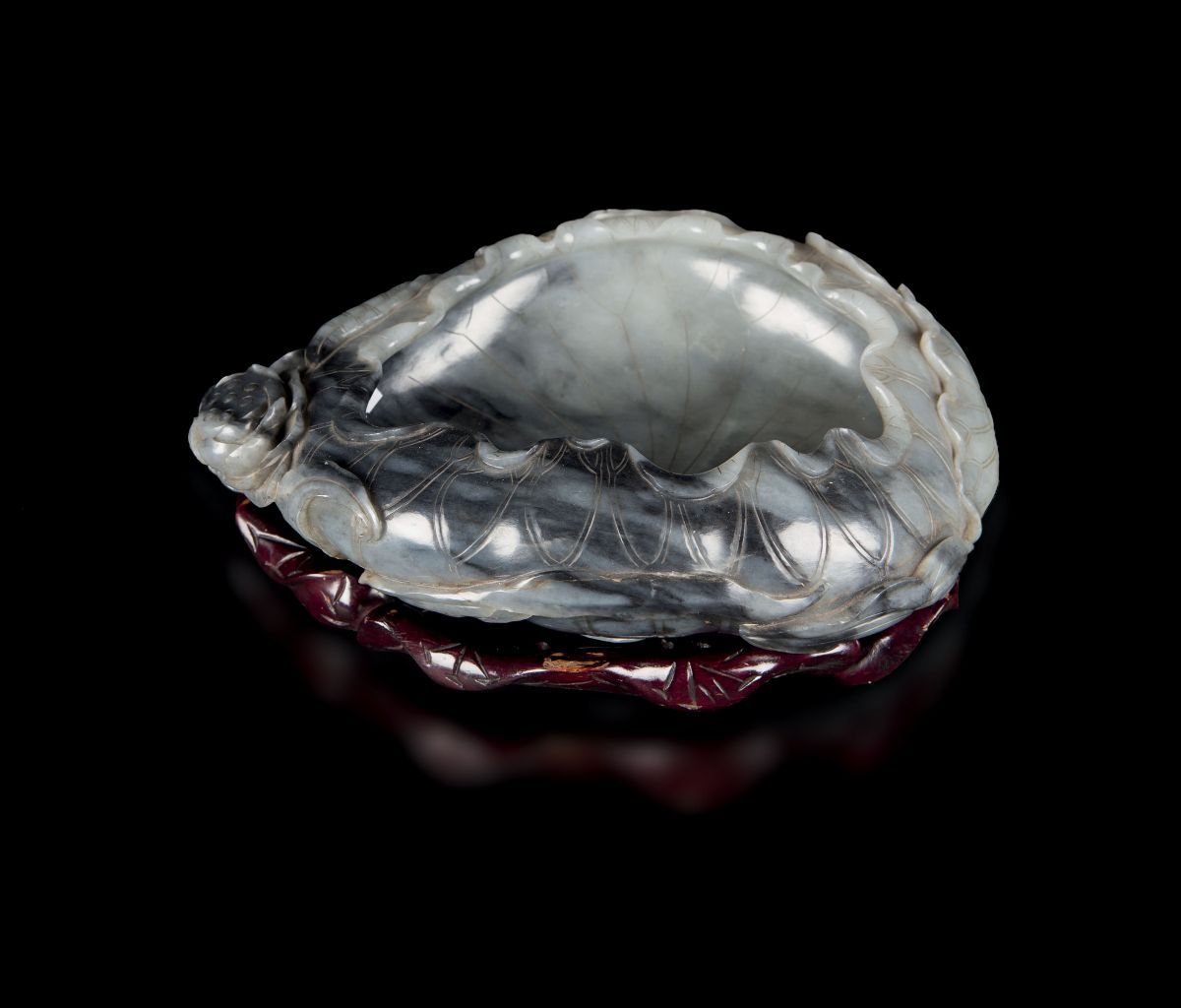 Grande sciacquapennelli in giada grigia e russet a guisa di fiore di loto, Cina, Dinastia Qing, epoca Qianlong (1736-1795 [..]
