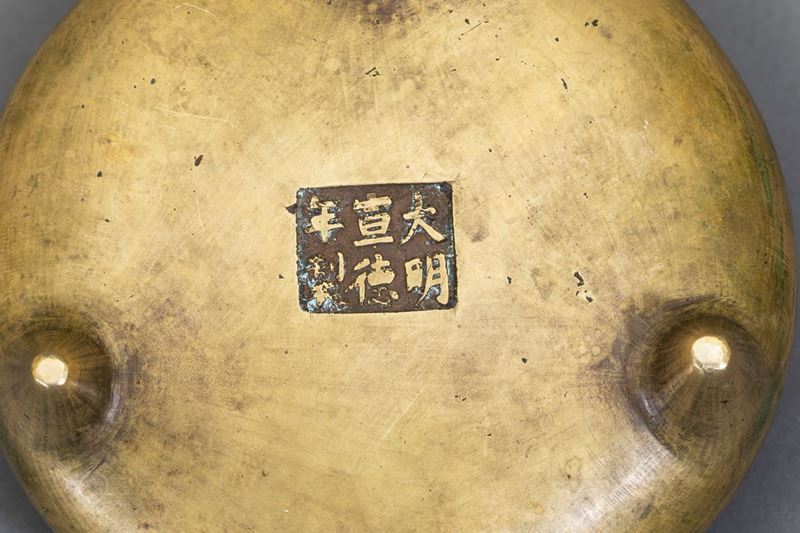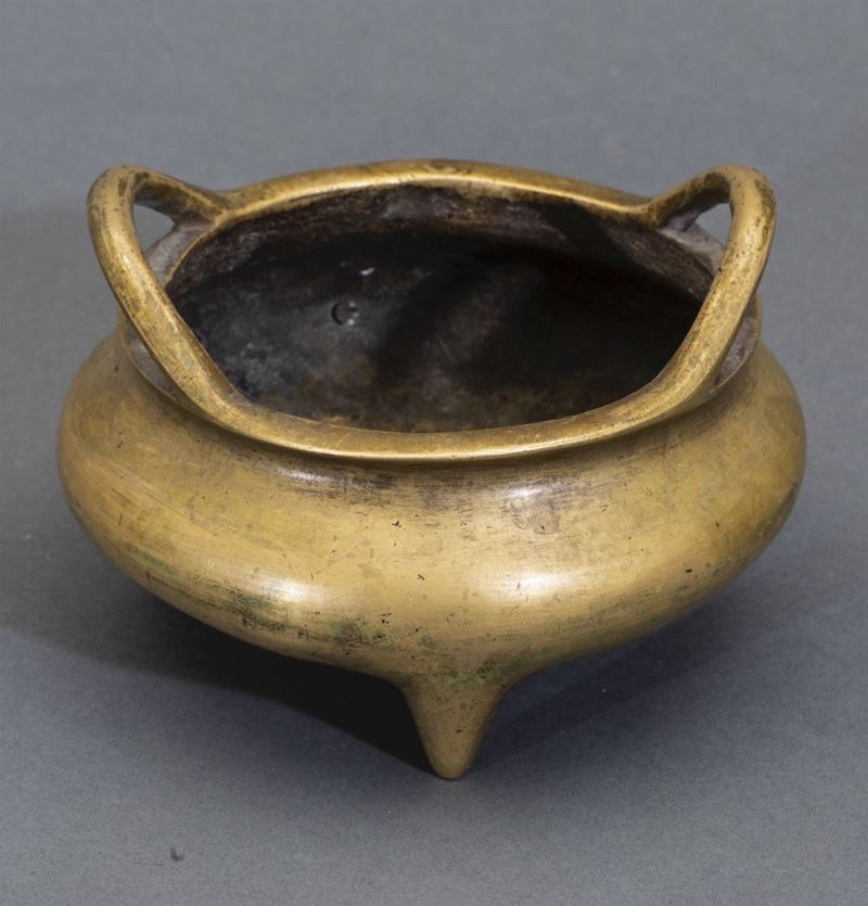 Incensiere tripode in bronzo con manici, Cina, Dinastia Ming, XVII secolo