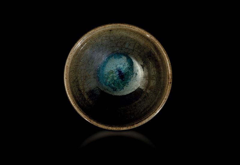Piccola coppa Jun con striature sui toni del celeste e del verde, Cina, Dinastia Song (960-1279)