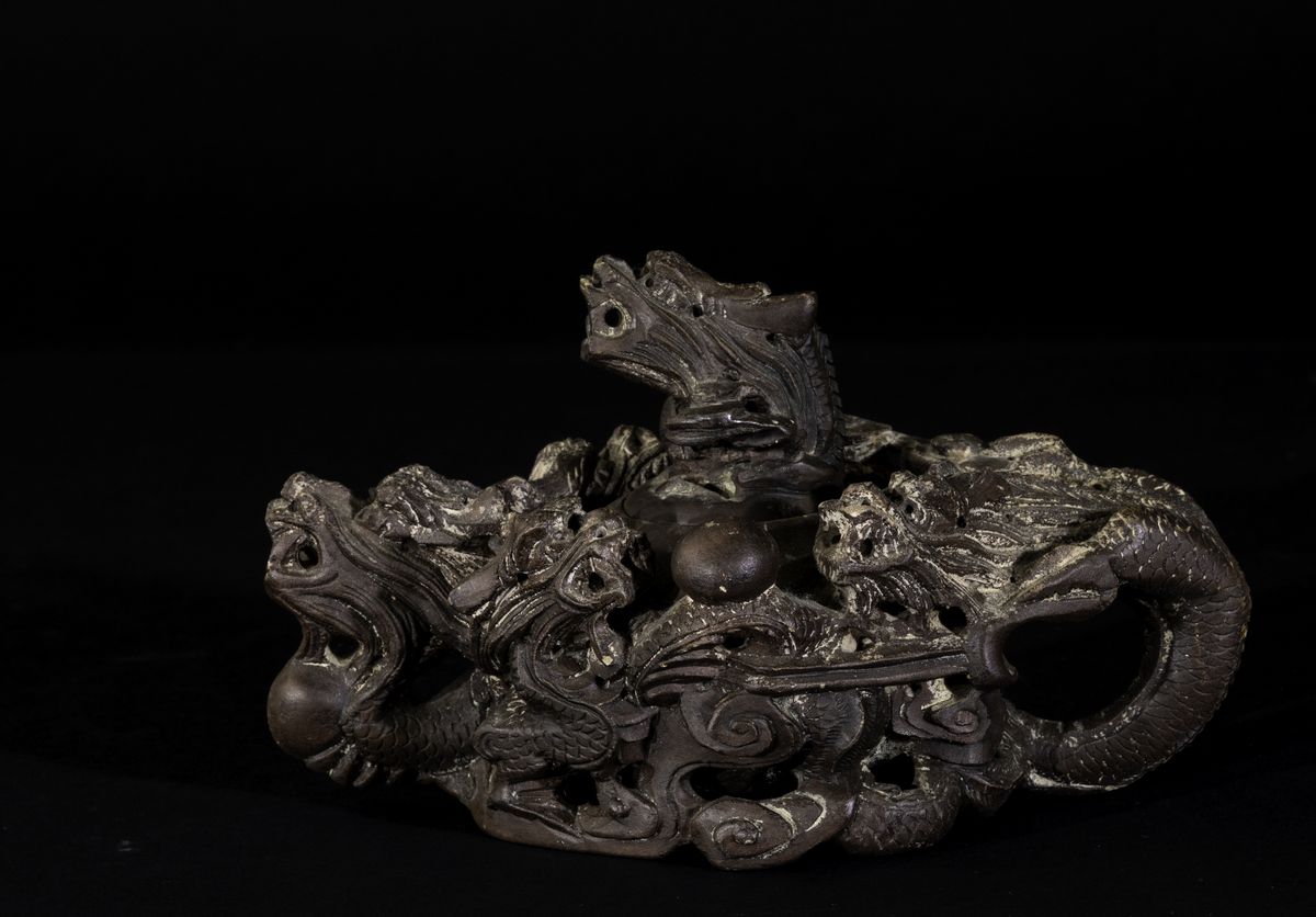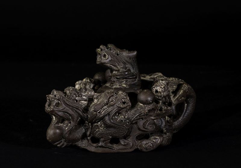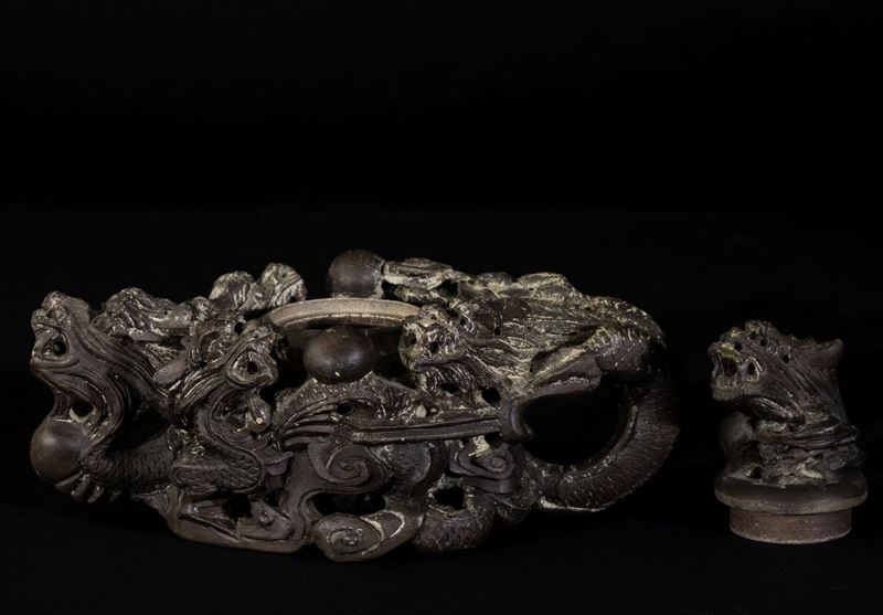 Teiera Yixing con coperchio e figure di draghi a rilievo, Cina, Dinastia Qing, XIX secolo