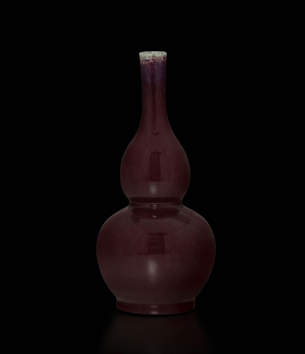 Vaso a doppia zucca in porcellana monocroma sangue di bue, Cina, Dinastia Qing, epoca Guangxu (1875-1908)