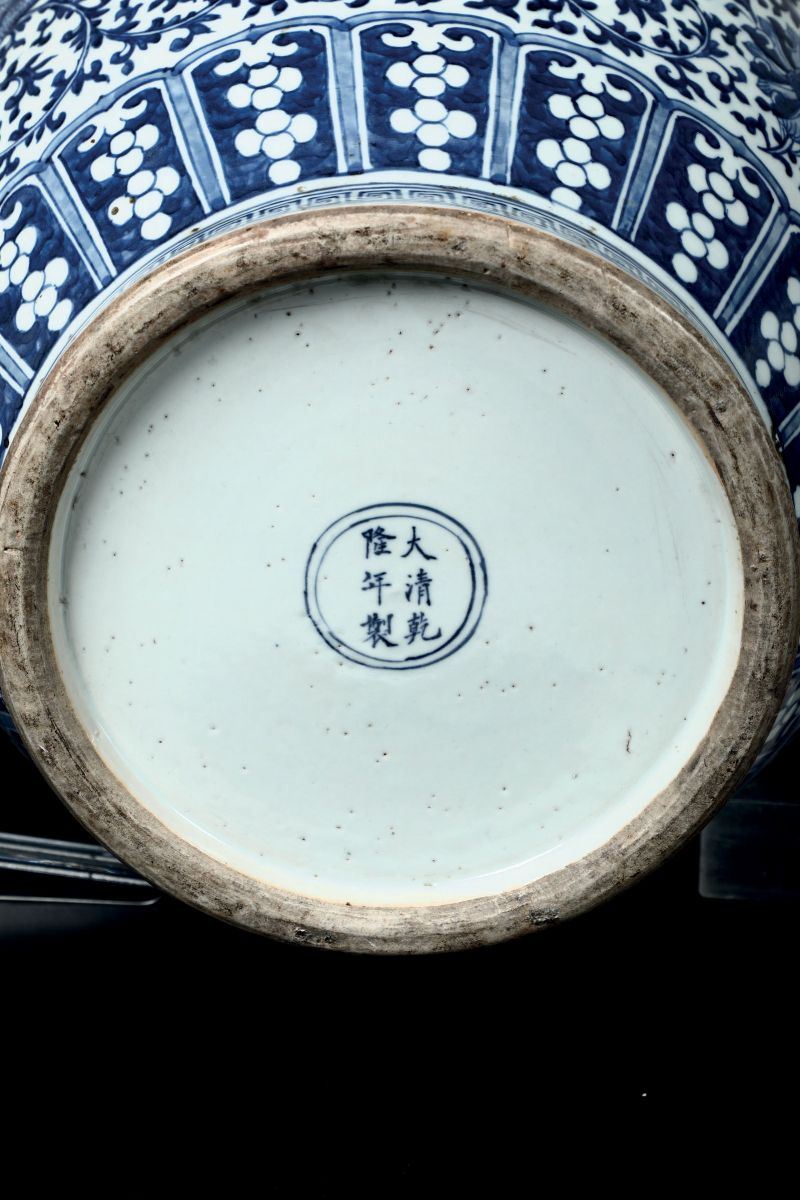 Vaso a due anse in porcellana bianca e blu con figure di draghi e decori floreali, Cina, Dinastia Qing, epoca Guangxu (18 [..]