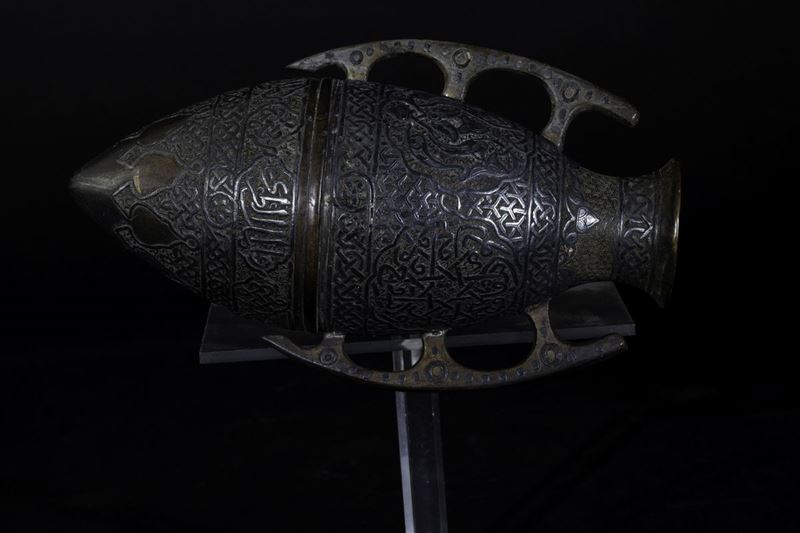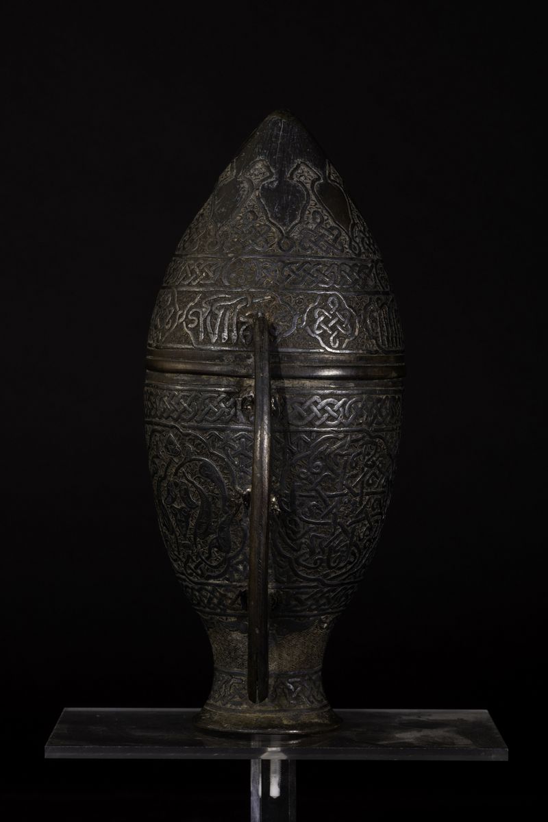 Vaso in metallo con manici sagomati e decori a rilevo e in argento, Turchia, XIX secolo