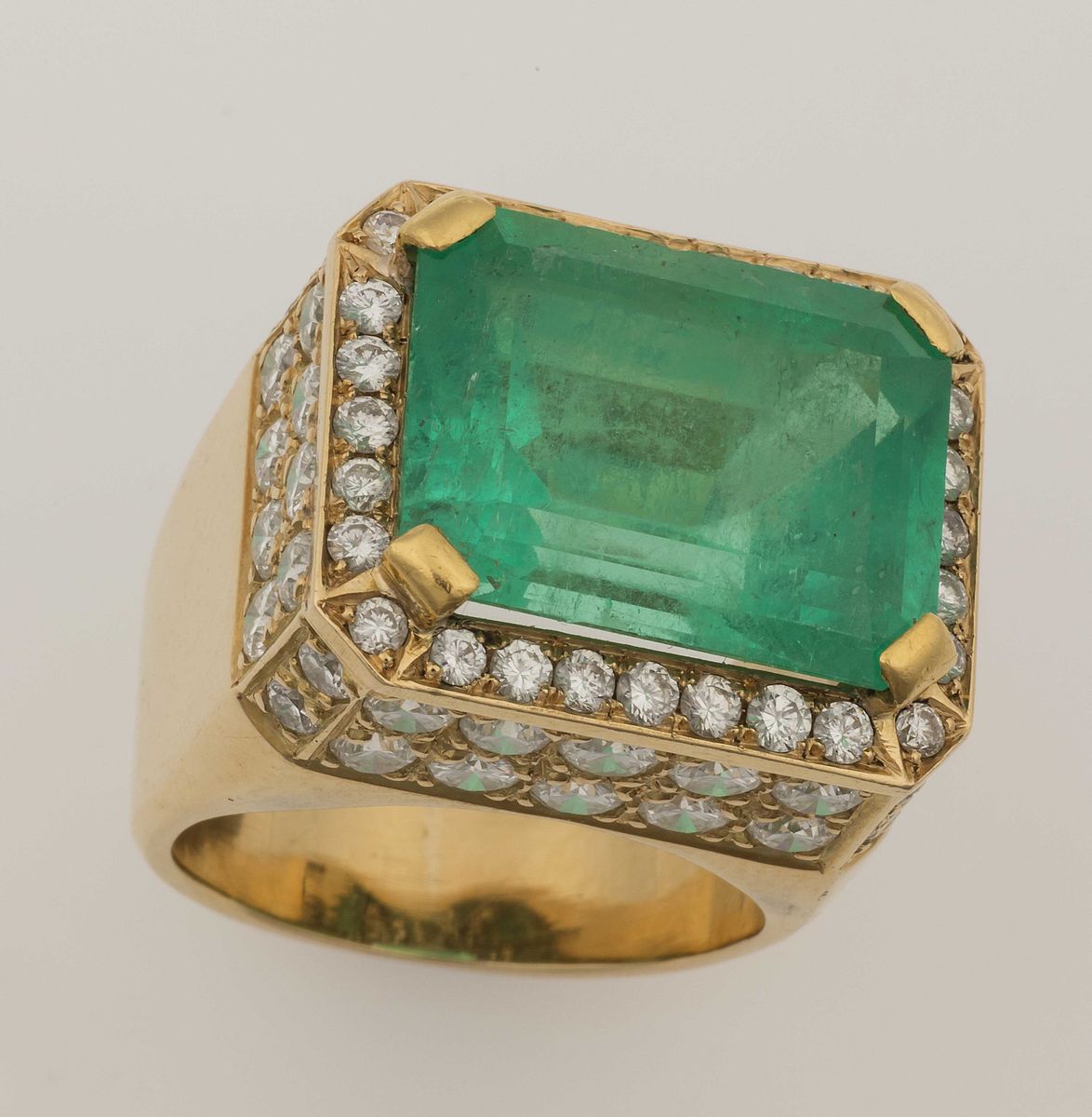 Anello con smeraldo Colombia di ct 17,50 circa e diamanti taglio brillante